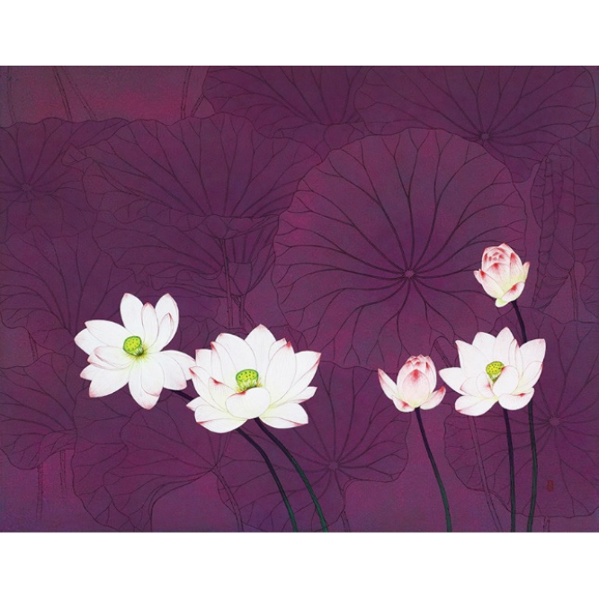 이 매개물, 연꽃과 연잎은 자연 속의 또 다른 자연인 동시에 전통 미술 속에서 부여받은 상징적 의미망을 두텁게 지니고 있다.